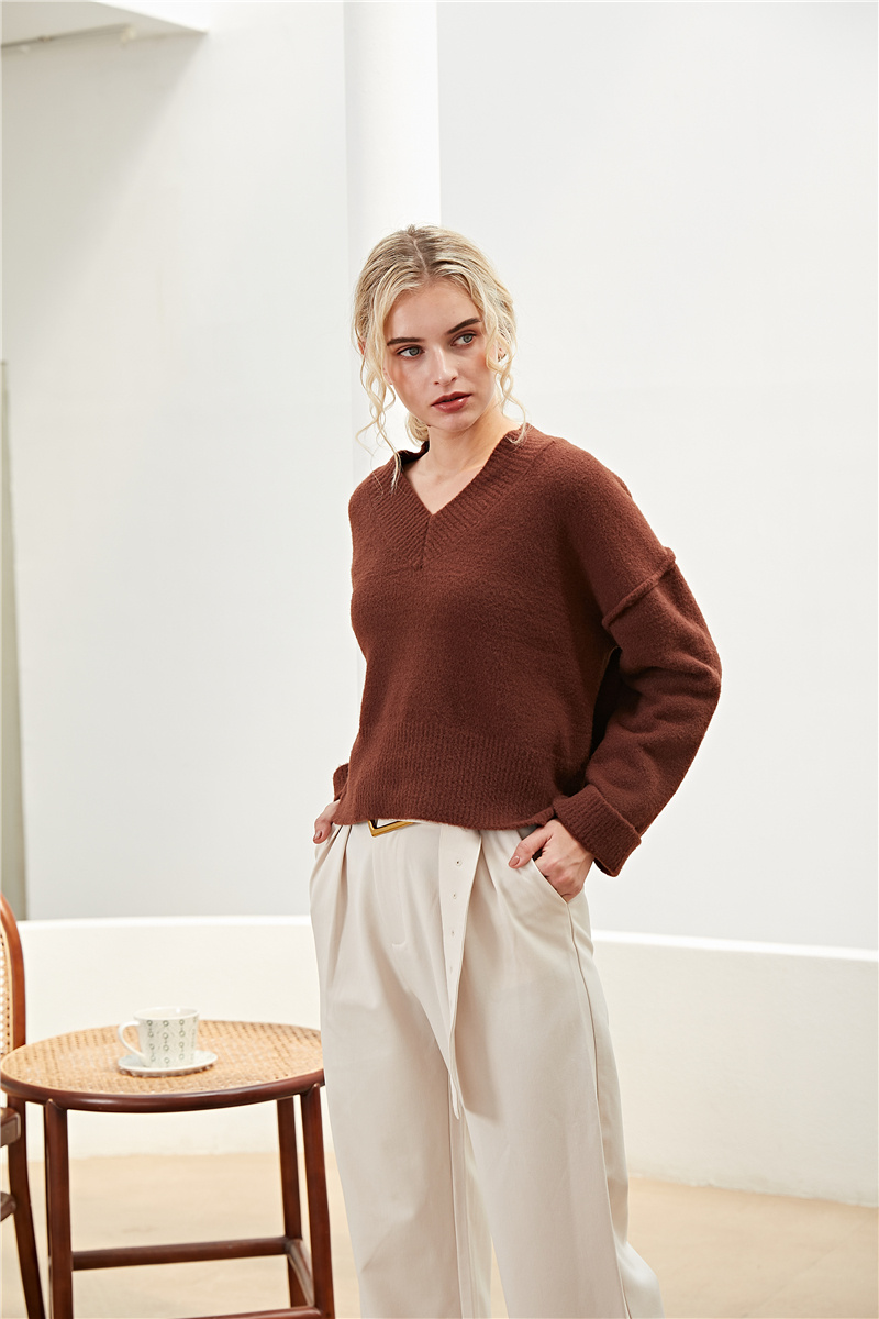 Introducing our Women's V-Neck Long-Sleeve Sweater OEM! This classic sweater is made with high quality materials and features a flattering V-neck design. Perfect for casual or professional settings, this sweater is durable and comfortable, making it a wardrobe staple. Enjoy the warmth and style of our Women's V-Neck Long-Sleeve Sweater today!